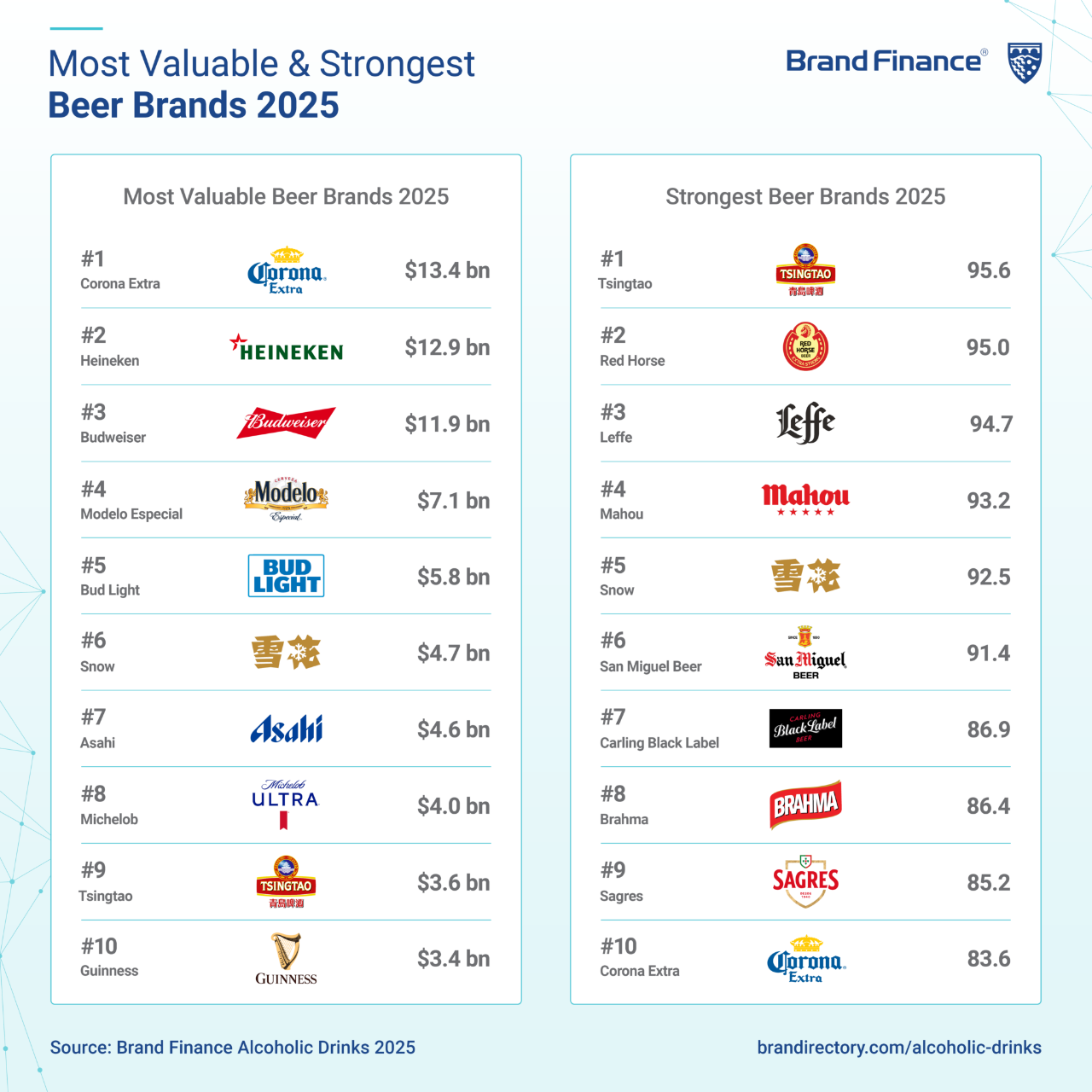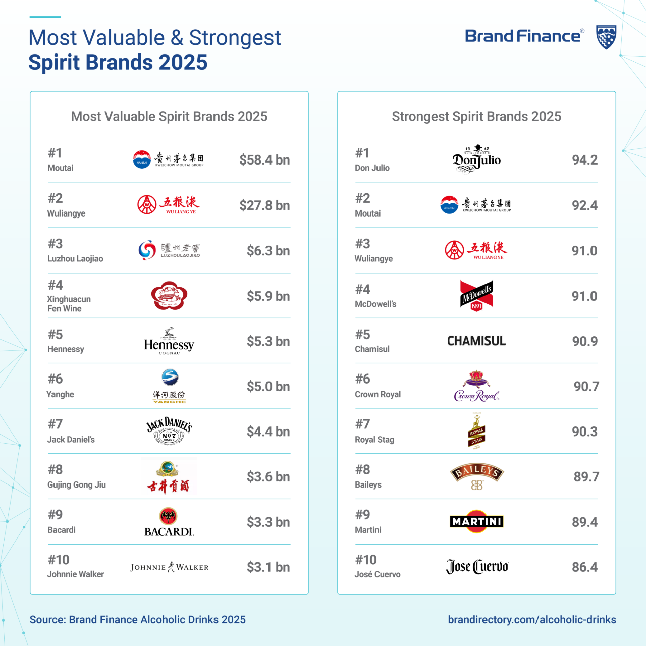 《Brand Finance(品牌金融)2025年全球酒精飲料品牌價值榜》正式發(fā)布