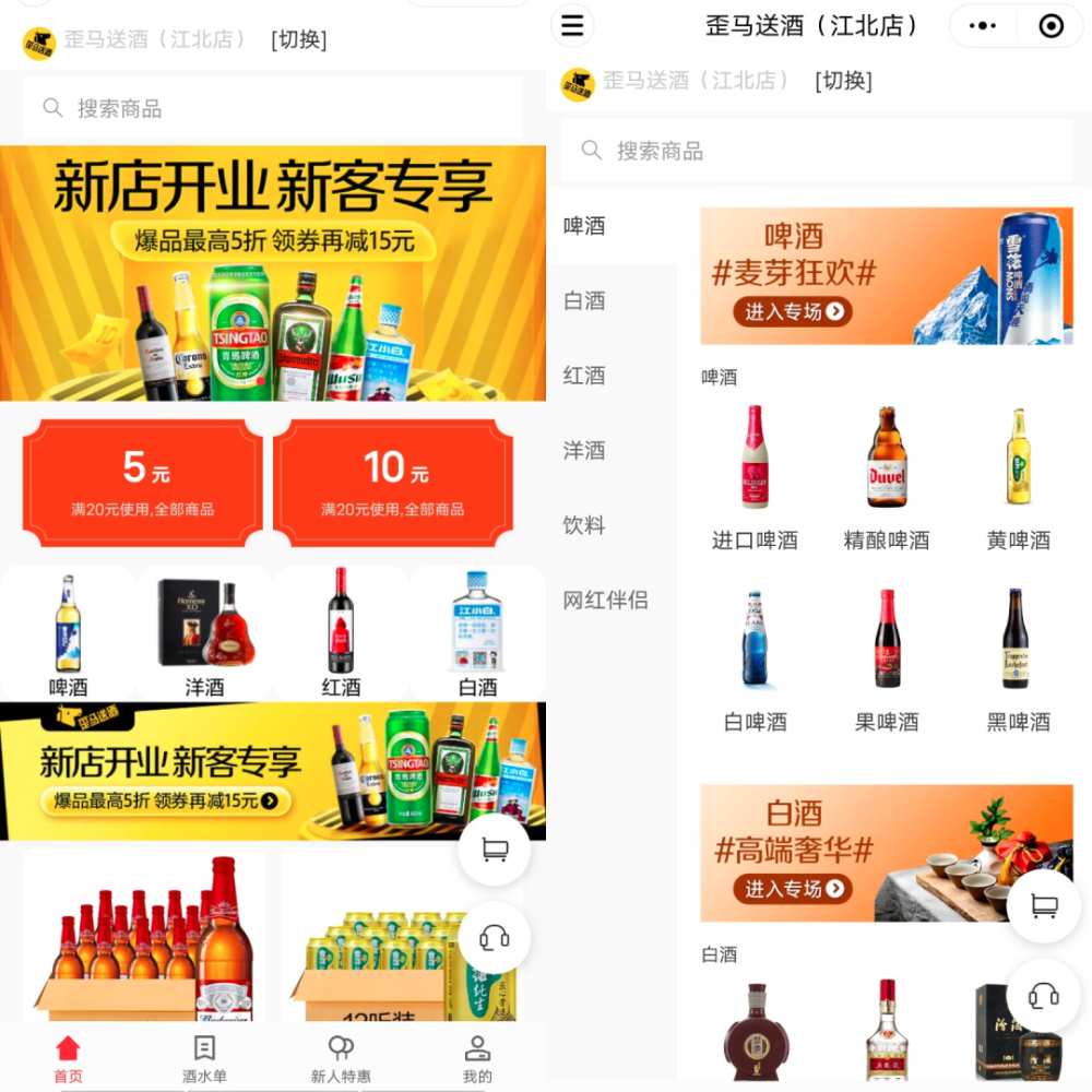 歪馬送酒目前主要以微信小程序的形式提供服務,美團外賣中也開設了相關門店。據了解目前僅在廣東惠州開放了送酒服務,并成立了線下直營門店,其他城市暫時還未開城。