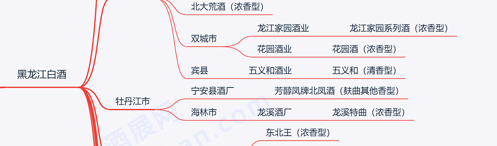 ?其他:古崖居、華豐、大三元、北泉貢、長河、圣元春、鯰魚溝、龍泉、龍江、北方佳賓酒、名山島、青賓、黑老、龍江龍、萬里河、鹿源春、牡丹江大曲、千杯少、大慶老窖、賓州特曲。