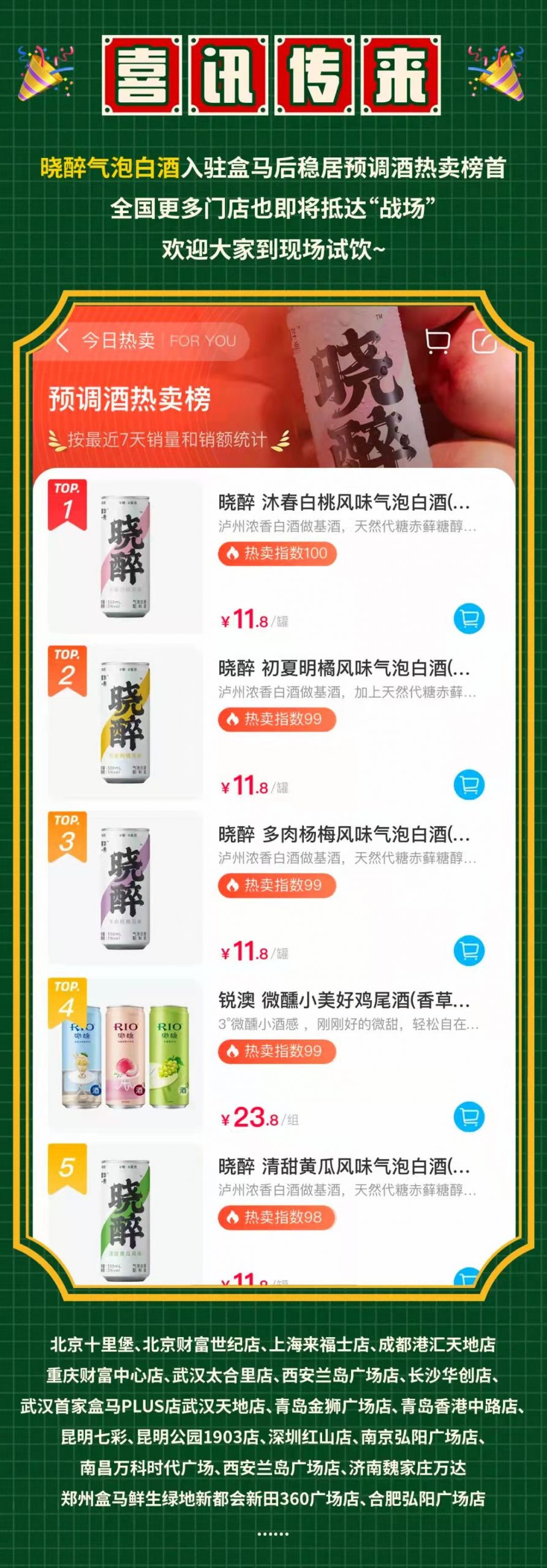 來自曉醉喜訊,上新一周曉醉成盒馬預調酒熱賣榜首