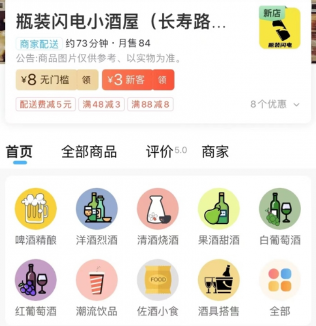 近日,星選閃電品牌在上海推出了首個新酒飲概念店——“瓶裝閃電小酒屋”,用戶可以從餓了么平臺下單訂購葡萄酒、精釀啤酒、水果啤酒、清酒、燒酒、威士忌、網紅飲料等,同時還可以配購洋琪佐酒小食。