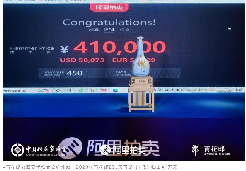 郎酒老酒拍賣價(jià)格屢創(chuàng)新高,25L天青郎拍出41萬元