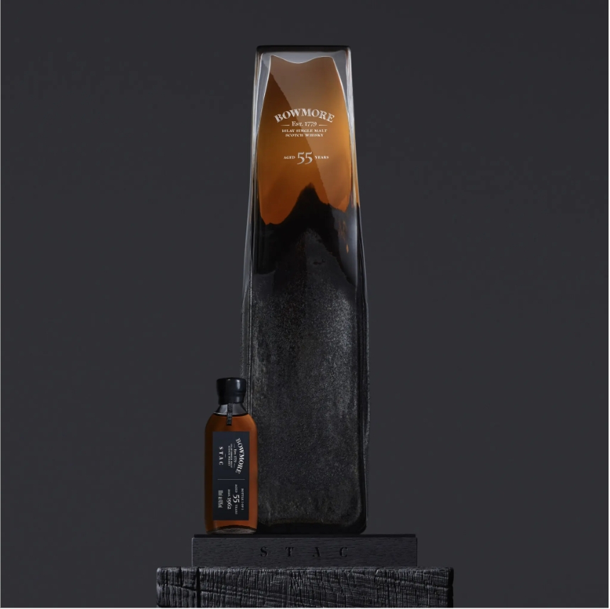在39個(gè)拍品中,成交價(jià)最高的是蒸餾于1962年的Bowmore STAC,該酒熟成于二次填充美國(guó)橡木桶(second-fill American oak hogsheads),酒齡為55年,是波摩品牌歷史上酒齡最高的酒款,酒精度數(shù)為41% ABV,容量為1.5升, 并且僅裝了1瓶。這瓶酒預(yù)估成交價(jià)為30至50萬英鎊,最終成交價(jià)為56.25萬英鎊(含傭金),按現(xiàn)行匯率計(jì)算,約合500萬元人民幣,成為了全場(chǎng)拍賣中成交價(jià)最高的拍品。