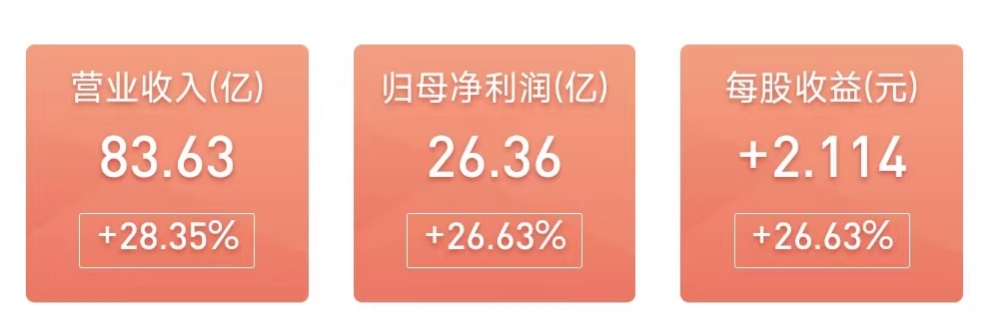 10月30日,江蘇今世緣酒業股份有限公司(以下簡稱“今世緣”)發布2023年第三季度報告,報告數據亮眼:公司1-9月實現營收83.63億元,同比增長28.35%;實現凈利潤26.36億元,同比增長26.63%。其中,三季度實現營收23.94億元,同比增長28.04%,實現凈利潤5.86億元,同比增長26.38%。