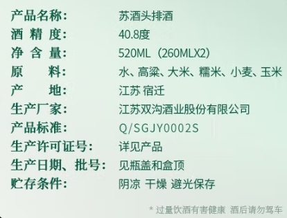目前,京東旗艦店雙溝蘇酒頭排酒40.8度260ml*2瓶禮盒裝標(biāo)價(jià)1379元。