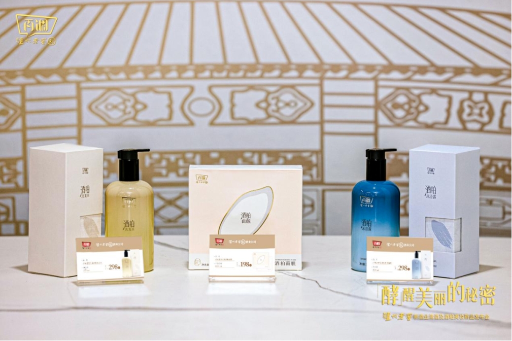 這5款新品包括3款瀘州老窖“百調”酒粕美妝系列產品——面膜、沐浴露和洗發水,2款“中華清酒”系列產品“云霓”和“嗔”。