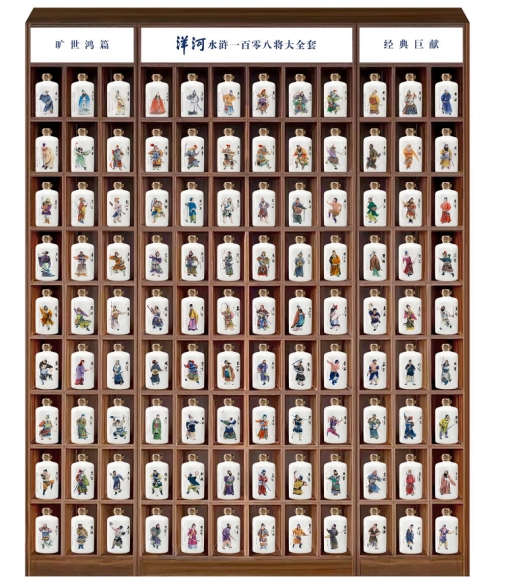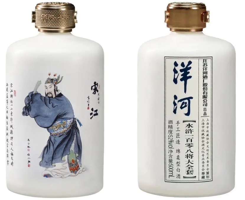 《洋河水滸一百零八將大全套》,融合名著、名酒、名工藝,集稀缺性、珍藏性、傳承性于一體,為藝術(shù)收藏提供全新選項(xiàng),為美好生活增色添香!該套收藏酒由一百零八個(gè)燒制著水滸人物形象的瓷質(zhì)瓶裝幀、每瓶含500毫升的52度白酒組成。