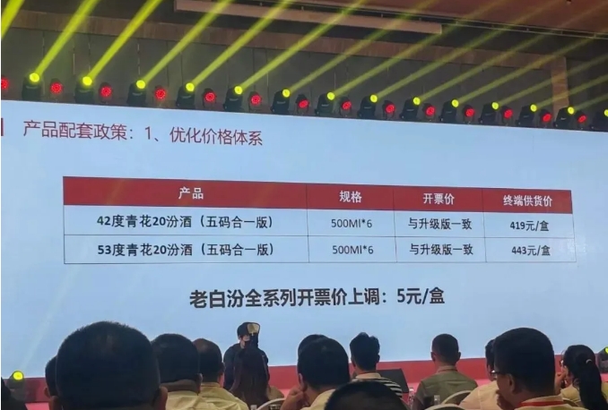 會上,汾酒首次提出將沖擊500+億市場目標,并宣布了最新的渠道政策和費用投放政策。在此戰略背景之下,汾酒宣布,青花20、老白汾酒10全新升級面市,老白汾酒全系列開票價每瓶上漲5元。在此次經銷商大會上,青花20汾酒新版,老白汾酒10新版上市。其中,青花20汾酒與青花30汾酒在包裝上做出明顯的區隔,在視覺感受上給予消費者更為清晰的認知。同時,新版青花20汾酒和新款老白汾10全部導入了五碼合一。其中,新款青花20汾酒出廠價與升級版一致,新款老白汾酒全系出廠價上調5元/瓶。