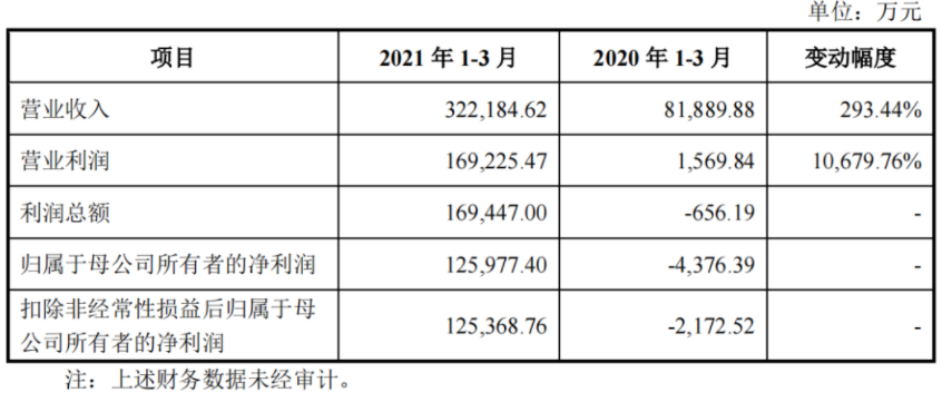 1-3月,郎酒營業收入32.22億元,同比去年增長293.44%;營業利潤16.92億元,同比去年大幅增長10679.76%;利潤總額16.94億元,歸屬于母公司所有者的凈利潤12.60億元。