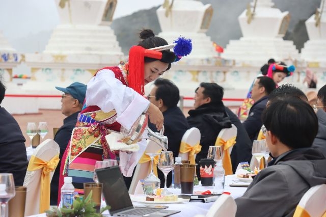 10月16日上午,第二屆梅里雪山國際葡萄酒推介會在德欽縣飛來寺梅里雪山觀景臺舉行,來自國內外葡萄酒界的企業代表、專家學者在梅里雪山下共同見證雪山與甘露的對話,共同探索合作與發展的新機遇。