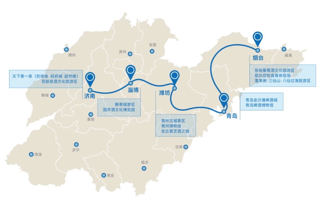 11月6日,山東省工業旅游推進會在煙臺召開。會上,省文化和旅游廳聯合省工業和信息化廳聯合推出“工業印記溯源之旅”等八大主題工業旅游精品線路。其中,詩酒年華暢游之旅規劃了山東酒旅路線。
