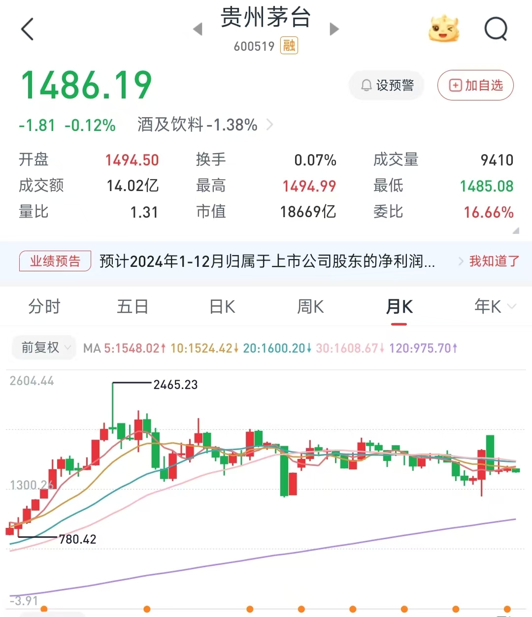貴州茅臺(tái)股價(jià)走勢(shì),截圖時(shí)間2025年1月3日